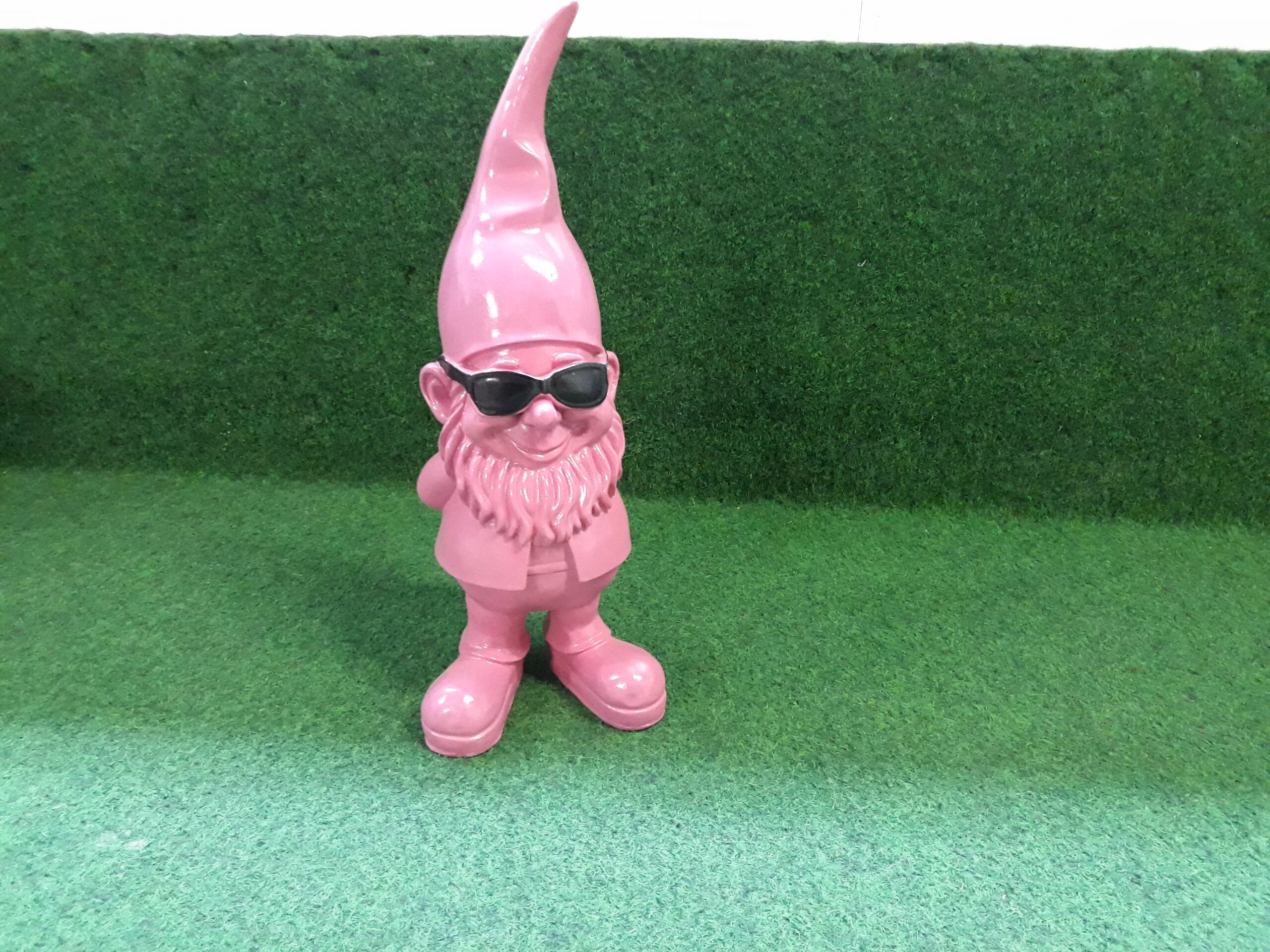 De tuin fleurt op met deze tuinkabouter met zonnebril in roze kleur. De kleine rakker is ongeveer 41 centimeter groot en steekt daarom uit over de kleine bloemetjes en plantjes. Dat is handig, want dan kan hij mooi op je tuin passen. Zet de kabouter op een plek zodat iedereen hem kan zien. Het is een echte aandachtstrekker.