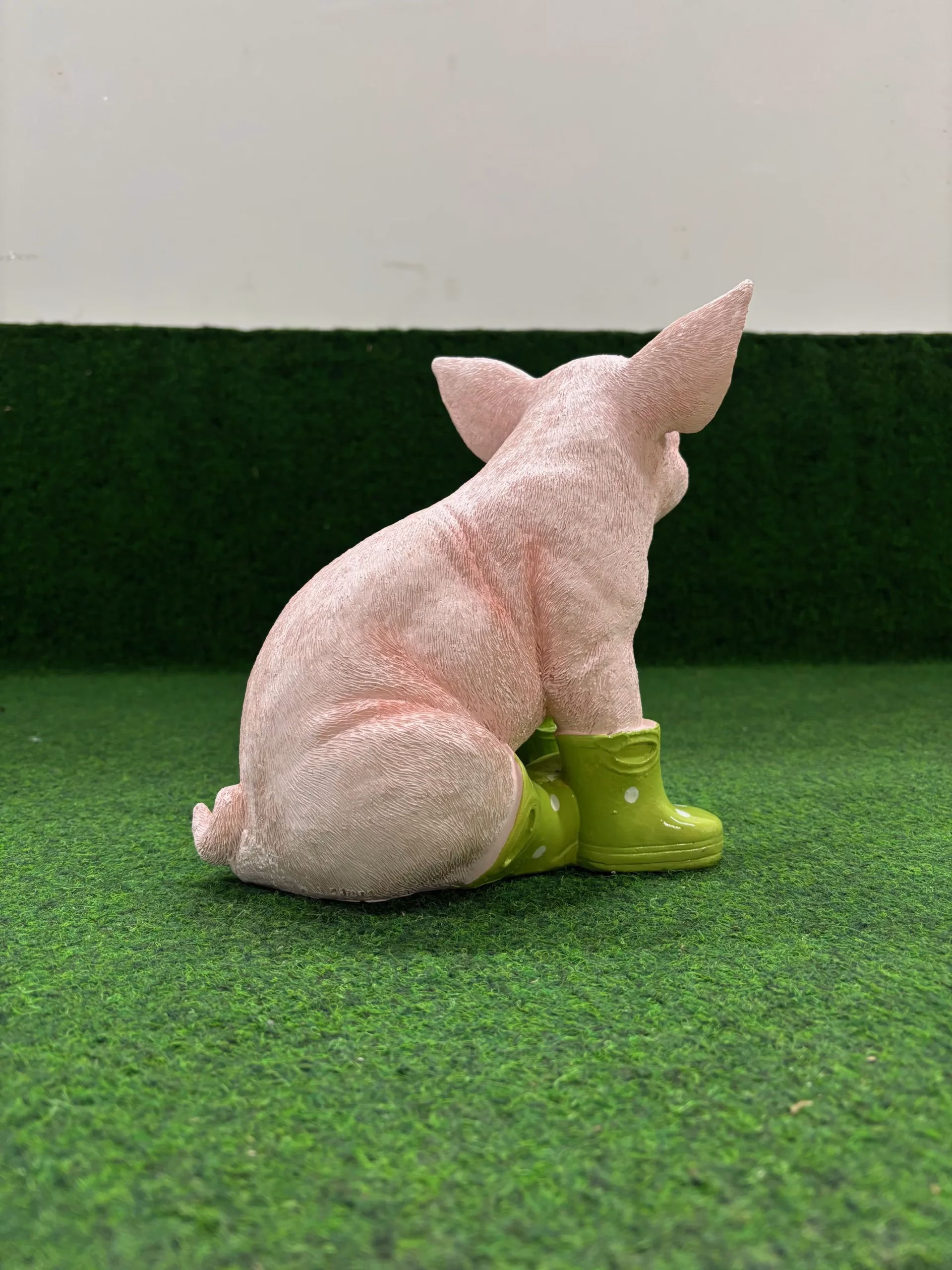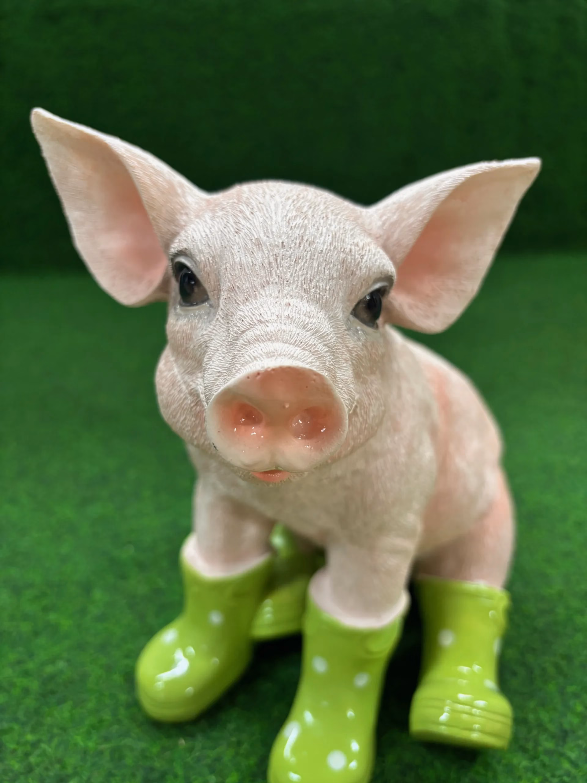 Varken zittend met groene laarzen